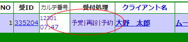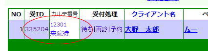 予約当日に当該患者が来院時に、下記処理で通常の来院待ちの設定されます。