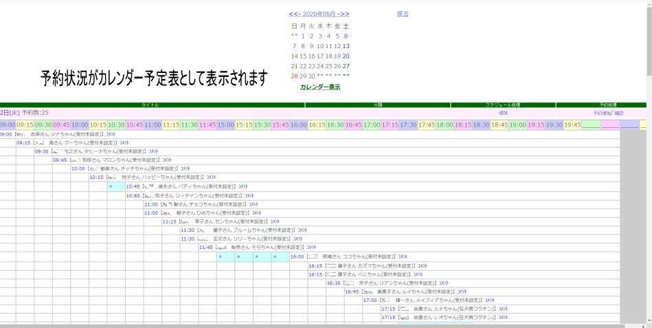 受付画面のスケジュールをクリックすると下記画面が表示されます。