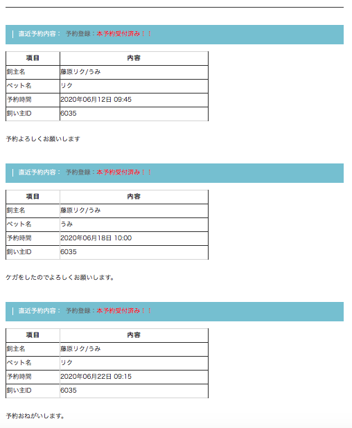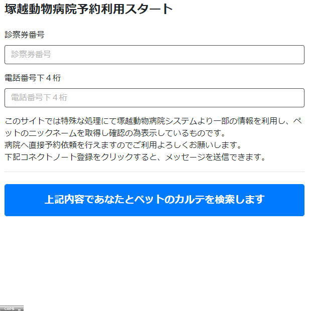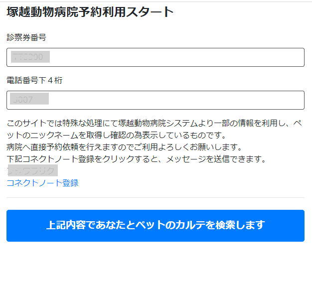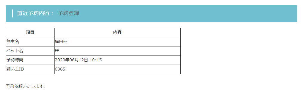 当塚越動物病院のおいては、ネットにて予約依頼を登録でき、病院側にて予約受付後、めっせーじにて飼主様側にて確認できます。