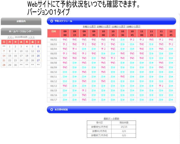 下記例は導入済の病院での予約状況をいつでもチェックできるサイトで空き状況確認できます。